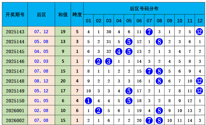 大乐透后区综合分析: