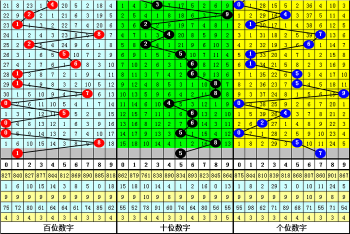(2)在号码频次方面,开出个数最少的三个号码为:3、9、8,一般来说这三个号码不会同时出现;开出个数最多的四个号码分别为:1、5、6、0,本期看好这四个号码中包含1-2个开奖号码,胆码参考0。5。
