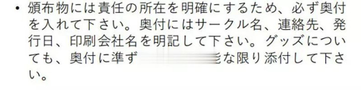 「为了明确颁布物的责任归属,请务必在作品中标示版权页。版权页需清楚记载社团名称、联络方式、发行日期以及印刷公司名称。即使是周边商品,也请尽可能附上相当于版权页的相关资讯。」